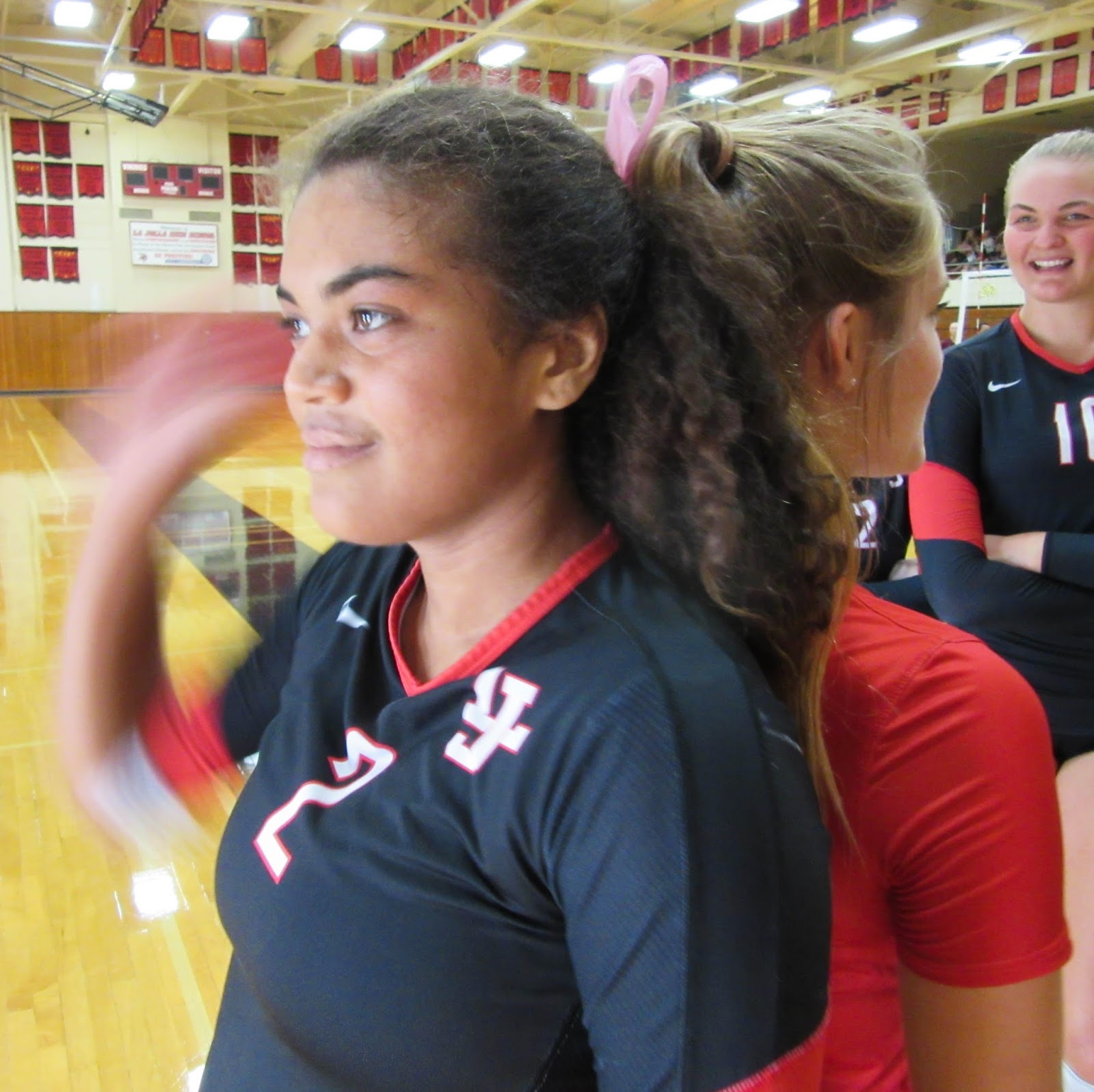 In the third game, La Jolla led 7-6. Sub Dana Waldburger, a Cal commit in beach volleyball to play alongside her sister there, had a nice kill to tie at 6-6. But then LCC squeaked out a 25-23 triumph, the straw that broke the camel's back.