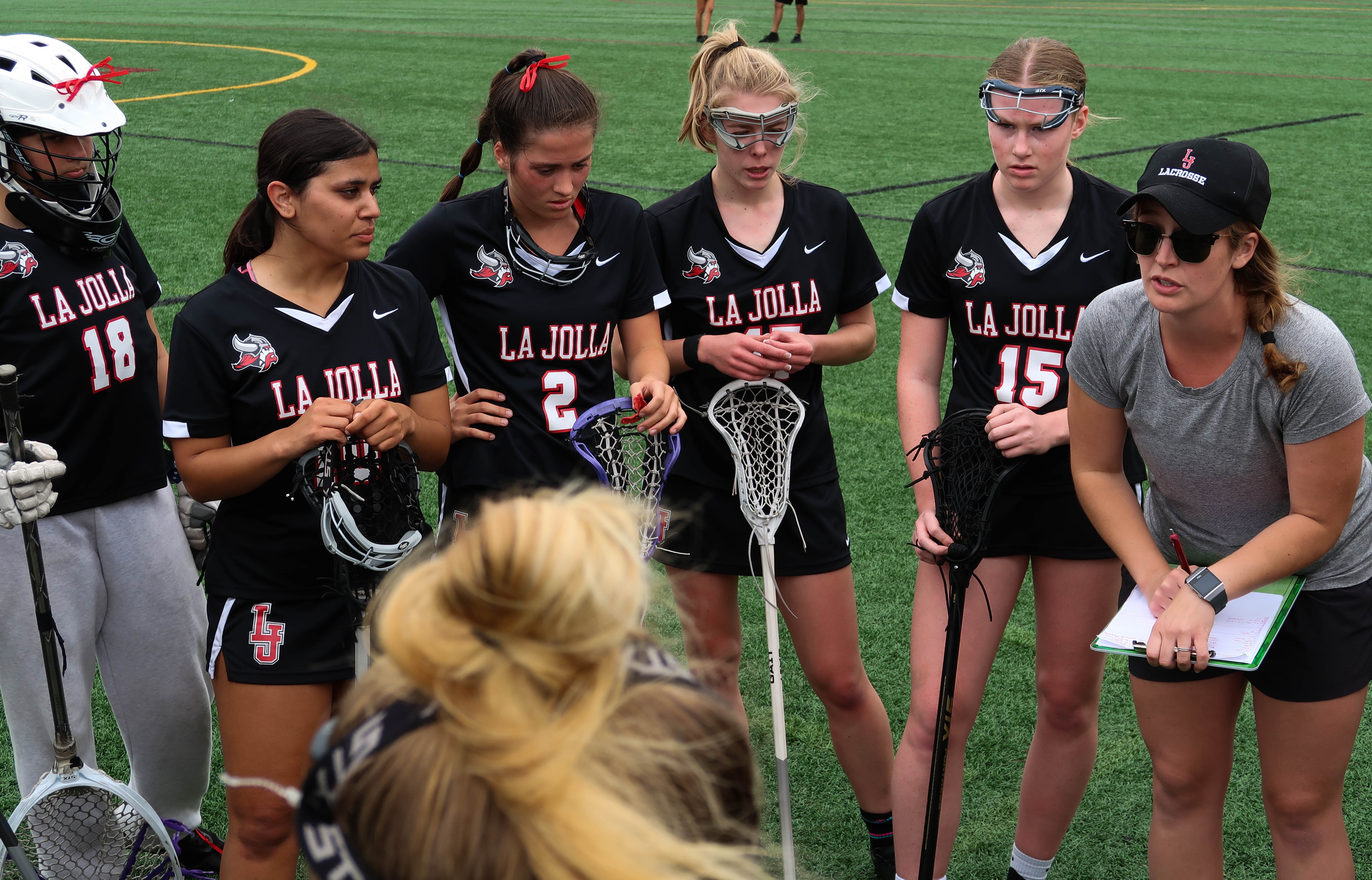Junior Laine Jeffery (7) of Bishop's is stymied